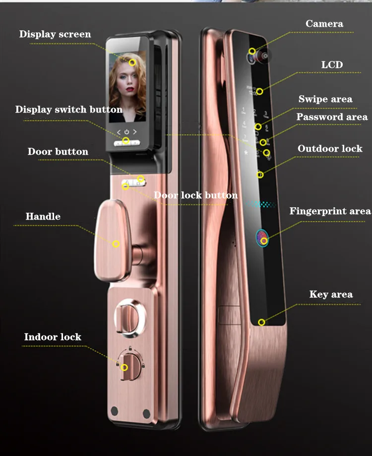 8.Fake passwords can be added before and after the password 9.Cat's eye camera + indoor display function