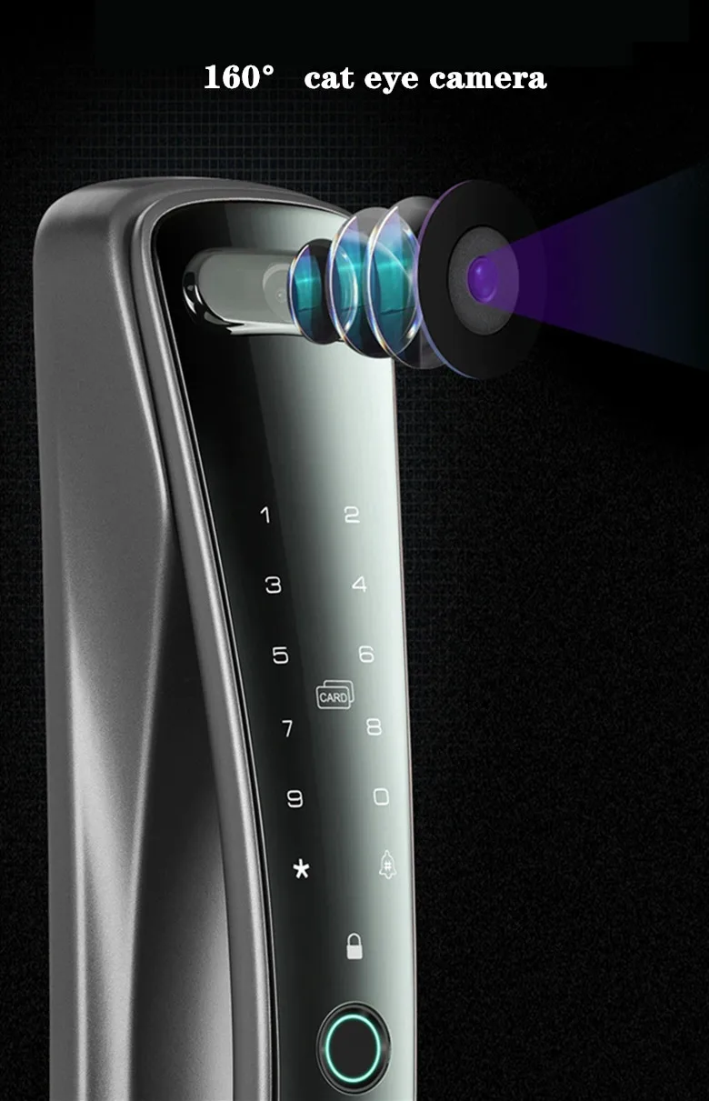 New Biometric Fingerprint Lock Security Smart Door Lock Password Electronic Locks Key IC Card Unlock APP Camera Electronic Lock
